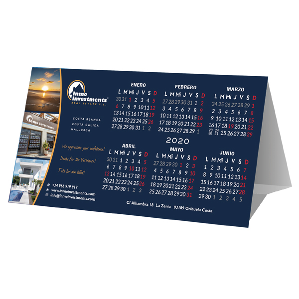 Impresión de calendarios de sobremesa de personalizados en imprenta en Torrevieja. Promociona tu empresa durante todo el año